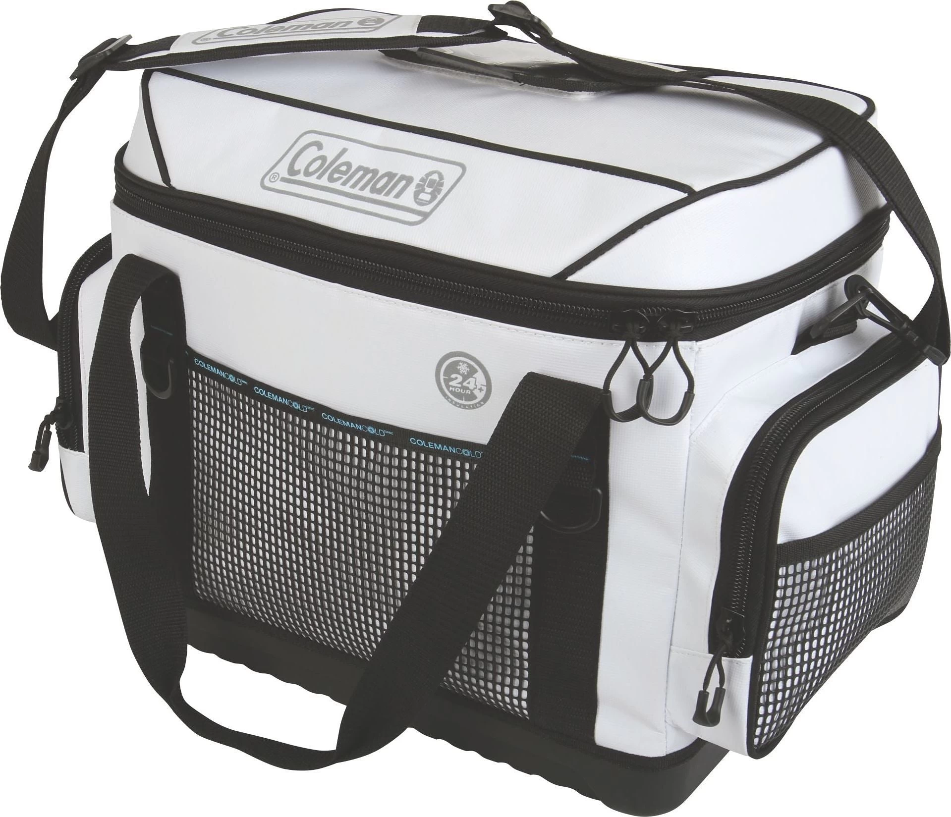 Keep your food and drinks cold for an extended time on the water when you bring a Coleman® 36-Hour 42-Can Marine Cooler. Extra insulation keeps your items cold for up to 36 hours, and the zippered main compartment also helps seal in the cold. Built to withstand the extra demands of a marine environment, the outer material is water-resistant to keep from soaking up moisture, and D-rings work perfectly to tie this cooler down to your deck so it doesn’t slide around when the water gets choppy. Zippered side pockets along with front and side mesh pockets let you store extra snacks. No matter where you go or what extras you bring, a padded, adjustable shoulder strap and soft-grip top handle make it easy to carry and load into your boat. After you’ve reached the perfect fishing spot, the top hatch in the lid makes it easy to grab an ice-cold drink. Once you’re back home, the antimicrobial liner resists odor, mold, mildew and fungus from forming on the product, making it easy to clean between each adventure on the water.
