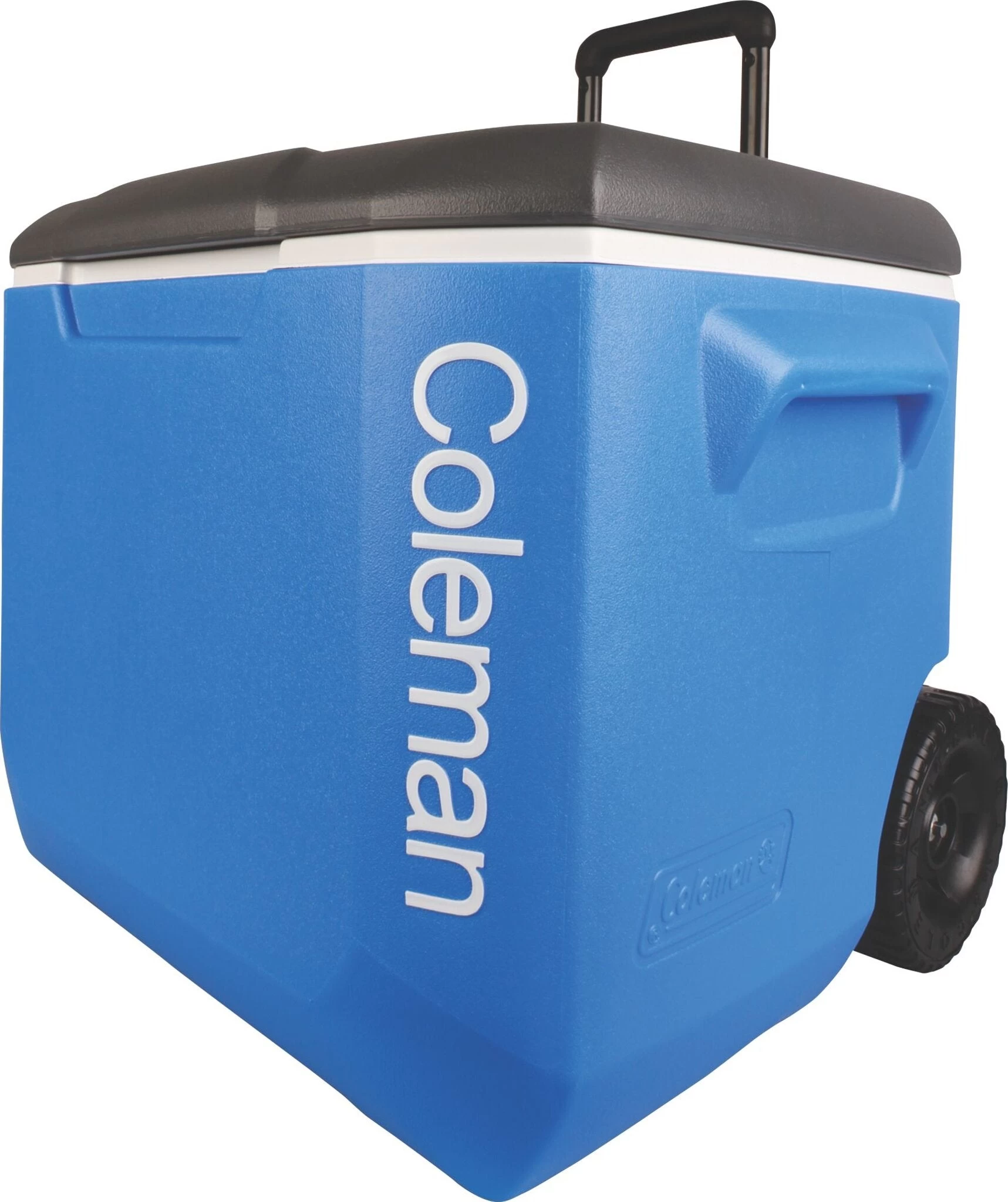 Keep your food and drinks cold, and keep the fun going, for up to 4 days when you roll in with a Coleman® 60 Quart Performance Wheeled Cooler. Large enough to hold 94 cans, you’ll have plenty of space for refreshments for a whole group of people. Whether you’re headed on an overnight camping trip, to a tailgate party, or across the ball field, the heavy-duty wheels and long, telescoping handle let you roll over almost any terrain with hardly any effort. Travelling is even easier because the telescoping handle locks into the extended position, so you can push or pull your cooler. The additional molded handles make it easy to lift your cooler in and out of the car or onto a picnic bench. Once you arrive, the Have-A-Seat™ lid will ensure you always have a place to sit and relax, and the cup holders molded into the lid will keep your cold drink close while you enjoy the day. When the fun is done, the EZ-Clean top wipes clean, and the leak-resistant drain makes it easy to empty any excess water, so you’re ready for your next fun adventure.