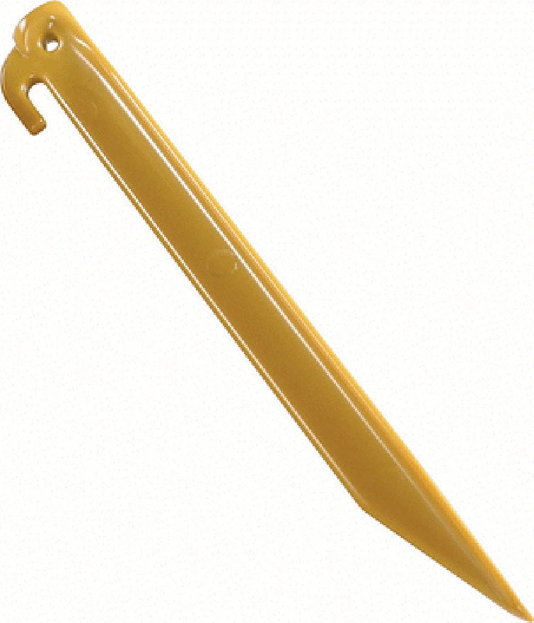 You’ll sleep soundly, knowing your tent is secured with Coleman® 9 in. ABS Tent Stakes. These heavy-duty stakes are specially-designed to take beatings from heavy mallets. The versatile tips allow campers to hook a tent’s stake loop to one side or thread a guyline through the other side.