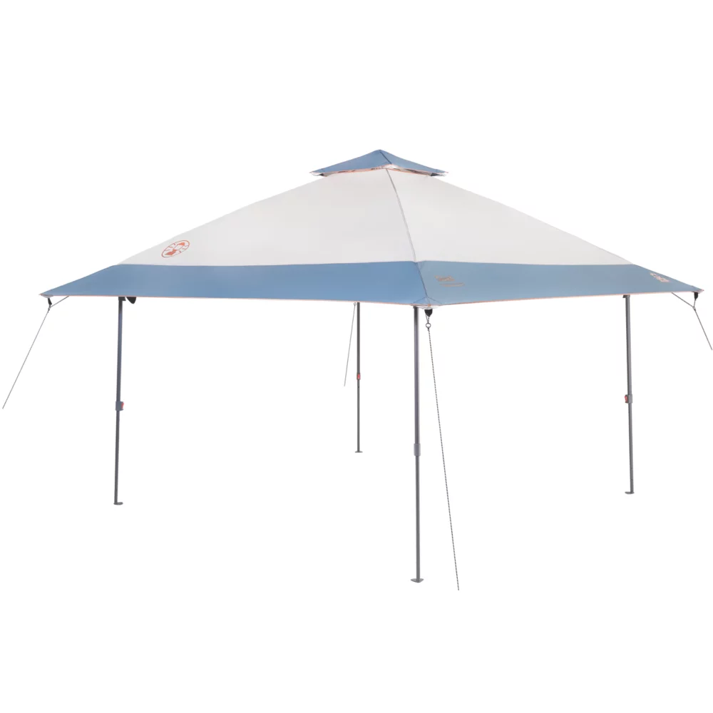 Keep the party going long into the night with a Coleman® All Night™ 13 x 13 Instant Lighted Shelter. The built-in LED lighting system casts up to 450 lumens of light for up to 13.9 hours. You can create the perfect atmosphere by dimming the lights to the perfect level. Illumiline™ reflective guy lines are more visible so you don’t get tripped up while you’re enjoying the night. You can also get the fun started faster with this shelter – it only takes about three minutes and three steps to set up 169 sq. ft. of shade, including the wide eaves that extend out to provide more cool shade in a smaller footprint. The telescoping poles are easy to extend into place thanks to the pinch-free Comfort Grip™ technology and large feet that are big enough to stand on while you set up the shelter. Once it’s up, the UVGuard™ material offers 50+ UPF protection from the sun’s dangerous rays, and a vented roof releases heat so you stay comfortable. When the fun’s done, the frame folds down for compact storage.