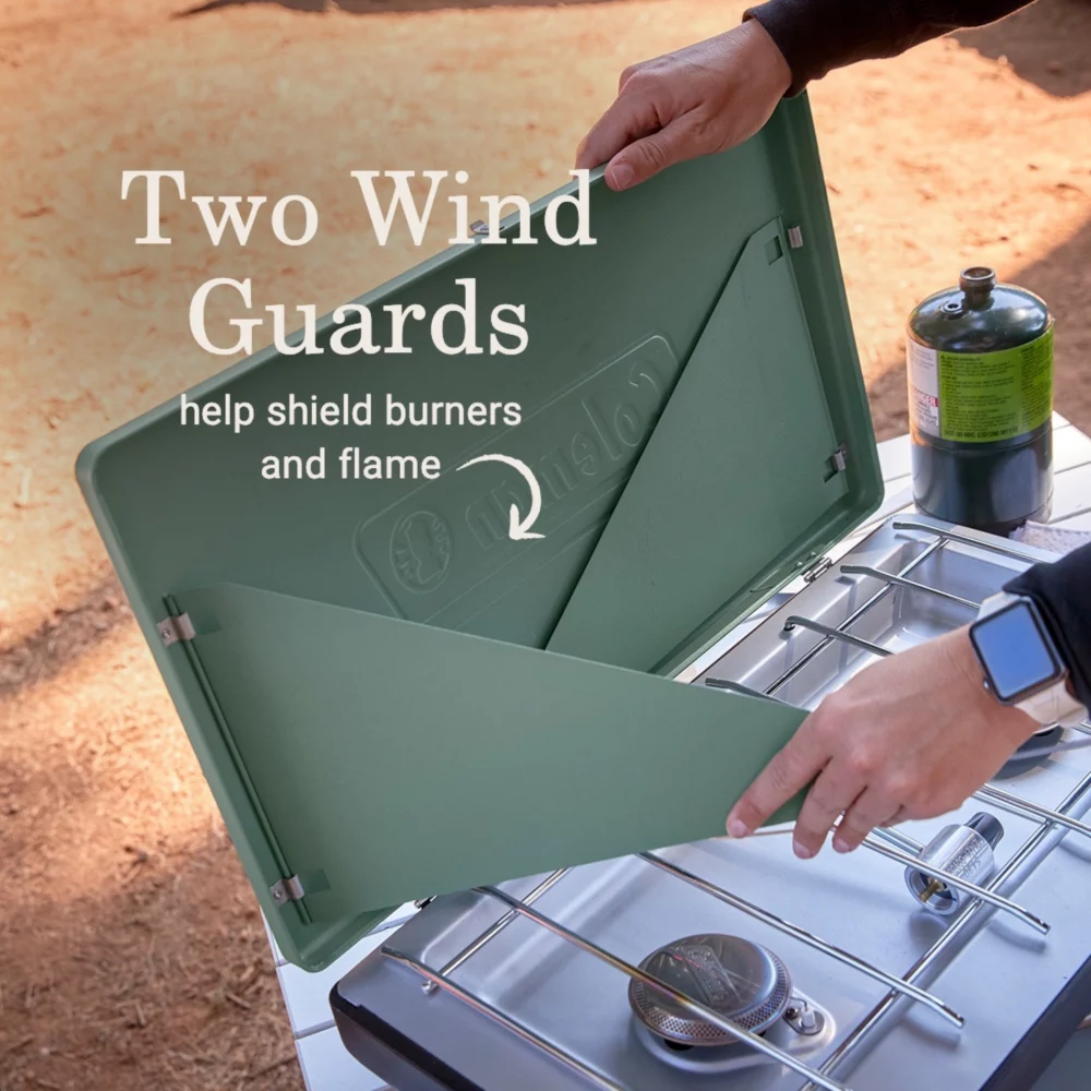 • TWO WIND GUARDS: Help shield burner and flame from wind