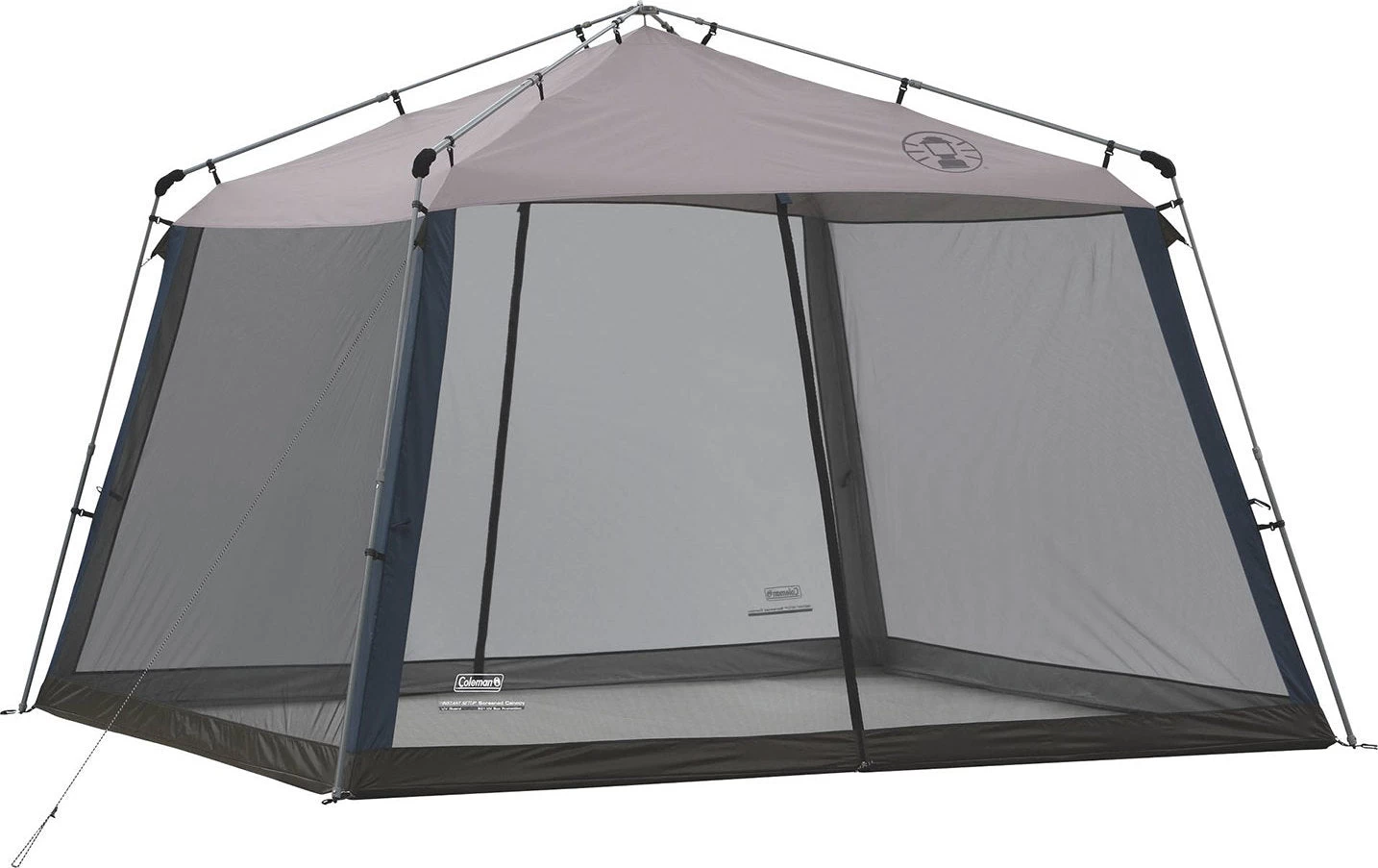 Find protection from the sun, wind and bugs under a Coleman® 11 ft. x 11 ft. Instant Screen house at your next picnic, BBQ or campout. The screen house provides a generous shaded area on a sunny day and it keeps tiny insects out with NO-SEE-UM MESH. The welded steel feet keep poles steady on asphalt.
