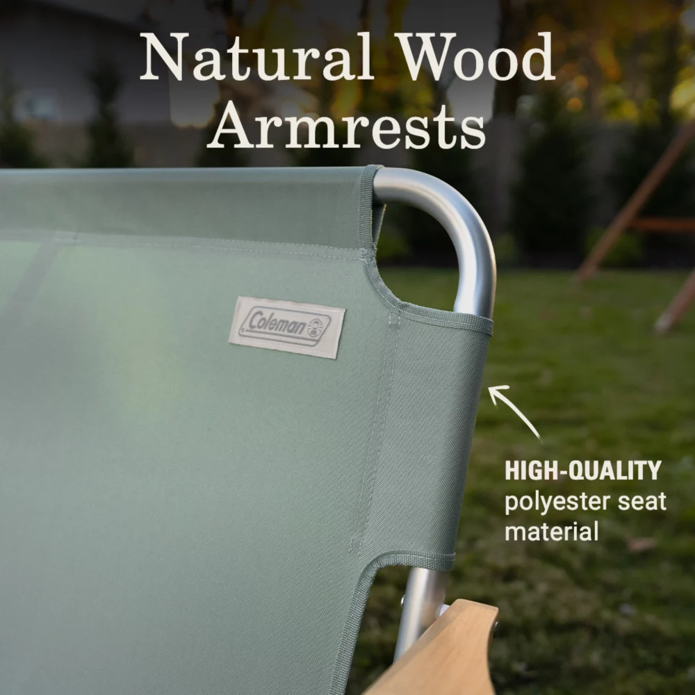 A loveseat for the outdoors? We’re in! The Coleman® Living Collection Bench is roomy enough to seat 2 people and supports 450 lbs., so go ahead and share or have it all to yourself. The lightweight frame makes it easy to move whether you’re in the backyard or at the campsite. Natural wood armrests add a stylish look that’s perfect for the patio or a glamping-inspired getaway. Made of high-quality polyester seat material that lasts season after season. Rain in the forecast? The bench folds up easily so you can store it away from the elements.