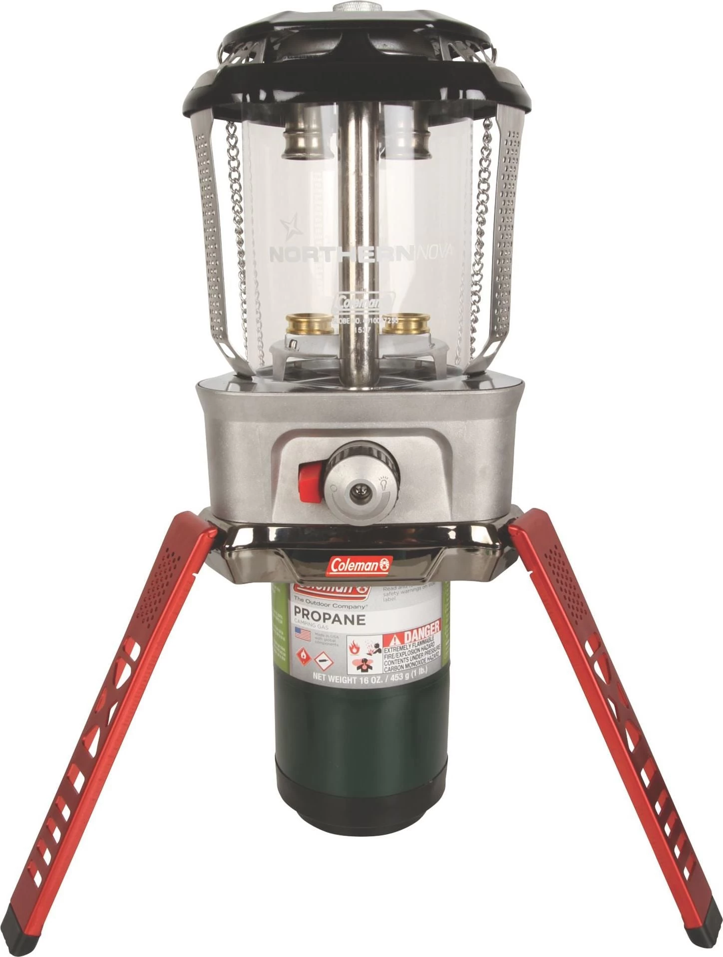 Fill your entire campground with light with the brightest Coleman® lantern, the Northern Nova™ Propane Lantern with Case. Our patented tube-mantles shine brighter than standard versions, and this lantern doubles up on that brightness technology to produce an unheard of 3000 lumens of light that reaches up to 32.5 meters away. Starting your lantern is easy. Just hit the Instastart™ push-button ignition and dial in the perfect brightness with the adjustable control knob. Once your lantern is lit, the legs provide extreme stability (and a space-age look) when placed on a table, and the chain handle allows for easy hanging. Meanwhile, the globe guard helps protect the globe from breaking. No matter where you go, the PerfectFlow™ pressure control technology produces a steady fuel stream and consistent performance in all kinds of weather. When you’re ready to head home, the legs fold up for more compact storage in the included case until you’re ready for your next bright adventure.