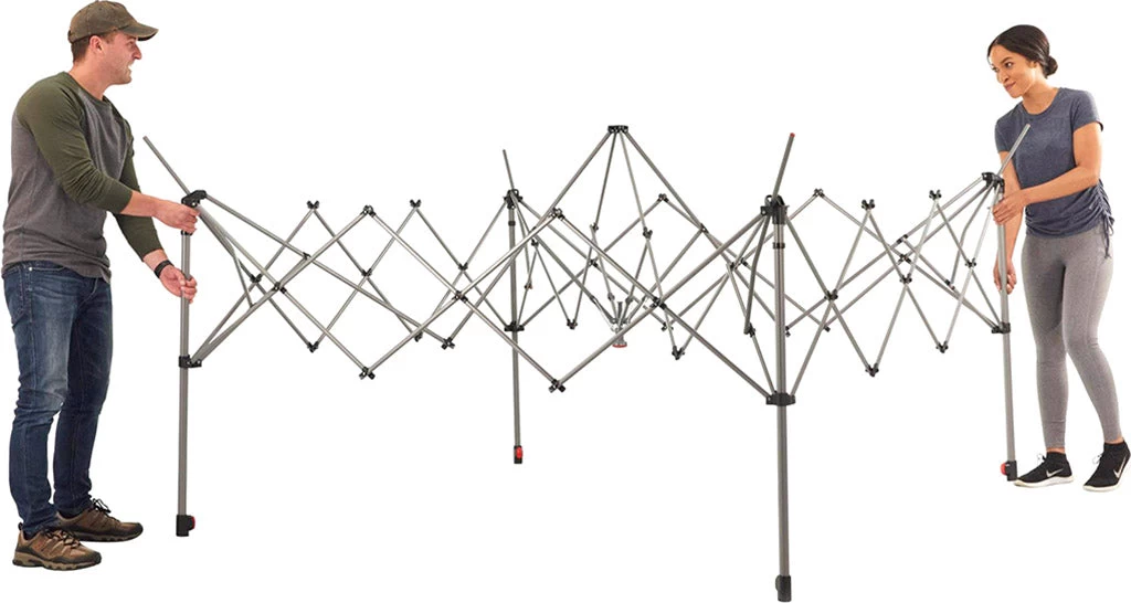 Vous vous détendez au camping ou lancez un disque volant dans un parc? L’abri solaire Coleman OASIS 3,05 x 3,05 m s’installe facilement grâce au moyeu central à pression unique avec technologie OnePeak™. Le cadre en acier robuste résiste à des vents jusqu’à 56 km/h quand l’abri solaire est bien fixé et l’évent du toit libère la chaleur emprisonnée pour vous permettre de rester au frais. De plus, les boutons sans pincement Comfort Grip™ facilitent l’installation et le démontage de l’abri solaire. Le FPRUV 50+ aide à bloquer les rayons UV nocifs du soleil et les avant-toits en surplomb procurent encore plus d’ombre. Quand il est temps de partir, un sac de transport avec roues facilite le rangement et le transport.