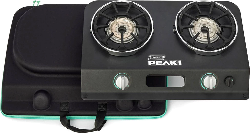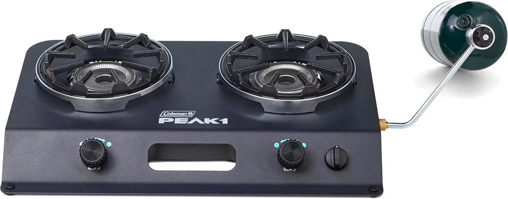 • Burns up to 1 hour on high on one 16oz. Propane cylinder(sold separately)|-|Rehaussez votre prochain voyage de camping avec la collection PEAK1™, un équipement de première qualité conçu pour inspirer et construit pour ceux qui profitent au maximum de l’extérieur. Influencé par le design des montagnes, le réchaud de camping PEAK1 à 2 brûleurs permet de préparer facilement de bons repas en plein air. Parce que nous savons que lorsque vous êtes dans cette aventure, vous planifiez la suivante, nous avons veillé à ce que la conception durable en fonte soit facile à nettoyer. Chaque petit espace compte lors de l’emballage, c’est pourquoi ce réchaud portable a un profil mince pour vous faire gagner de la place, ainsi qu’une poignée robuste et un étui en mousse.