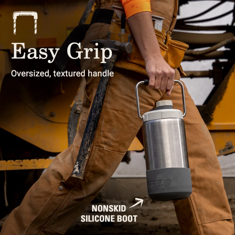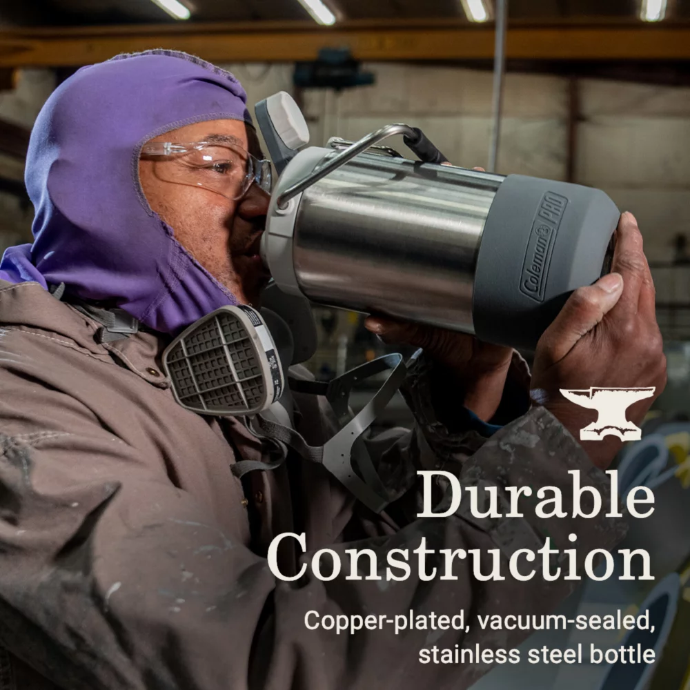 Coleman Pro is gear that works hard like you. It is purpose-built for everyday use in the most demanding environments. The Coleman Pro 1 Gallon Water Jug is crafted from durable copper-plated stainless steel and topped off with a fully insulated lid to keep your water cold in the hot sun. Backed by a 5-year limited warranty, this large water jug is designed with smart extras like a tethered leakproof cap that’s easy to handle in work gloves and won’t get away even if you drop it. The Coleman water jug’s silicone boot helps it stay put when you set it down and then pops off for easy cleaning in the dishwasher. An oversized handle makes for comfortable hauling when it’s filled to the brim.
