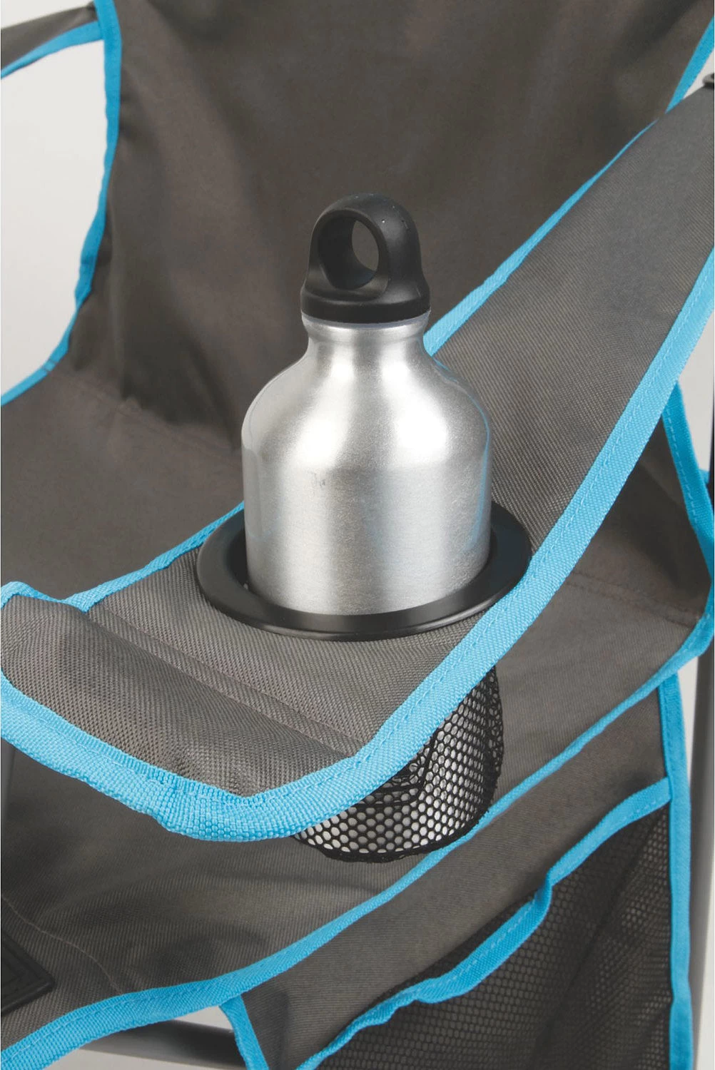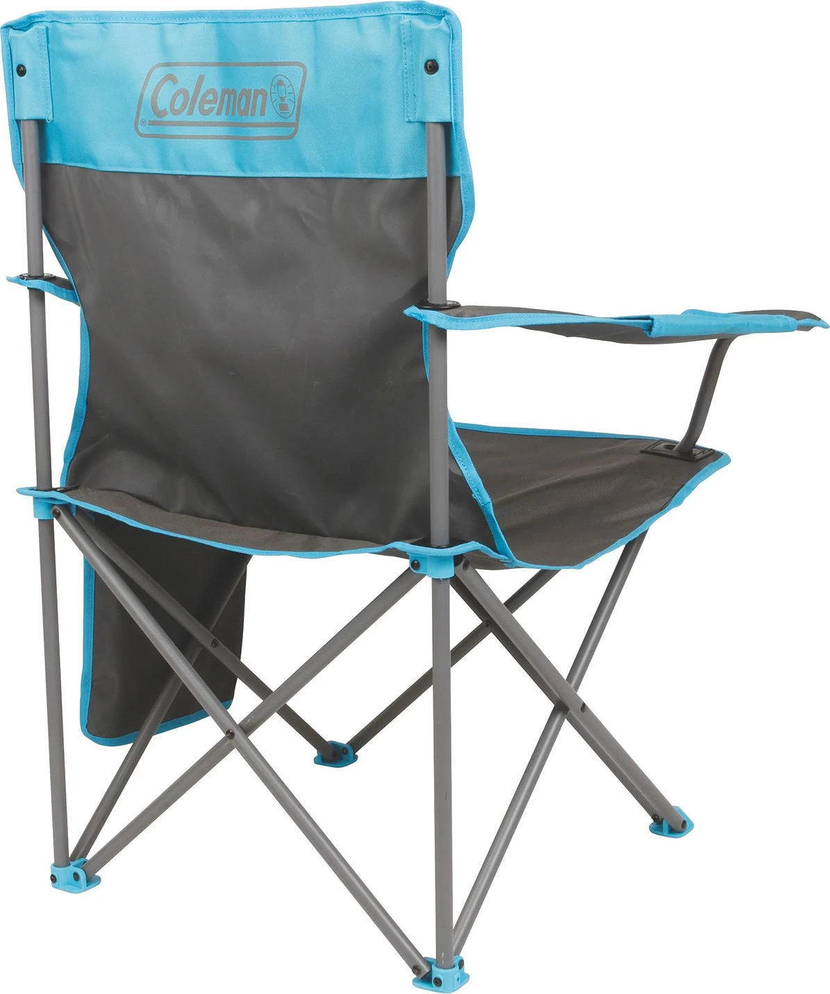 Relax in comfort with the Coleman® Quad Chair. The reinforced steel frame is tough and resilient and can accommodate up to 250 lbs. Keep your drink nearby with the mesh cup holder, while storing other personal items in the side storage pockets. Your mobile phone will stay dry no matter the weather in the water resistant PVC mobile phone case holder. The armrests are adjustable so you can create the ideal fit whether you are camping, picknicking or at a sporting event. When you are ready to pack up, the quick-fold design packs down in seconds and fits neatly in the handy carry bag for easier carrying.