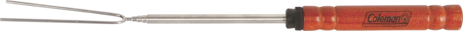 • Rotisserie knob on handle allows fork to turn 360° for even cooking of hot dogs and marshmallows|-|Vous et vos amis serez épatés par tout ce que cette fourchette chromée en apparence simple peut faire pour égayer vos feux de camp. Cet essentiel des campeurs peut tourner sur 360 degrés pour permettre aux saucisses à hot-dog, aux guimauves, aux légumes et autres aliments de cuire uniformément. De conception sécuritaire, la fourchette est dotée d’une poignée en bois froide au toucher et d’un manche téléscopique à longueur ajustable qui permet de se tenir à bonne distance du feu. Après avoir terminé, il suffit de la rétracter jusqu’à une longueur de 12 po (30,5 cm) pour un rangement compact.