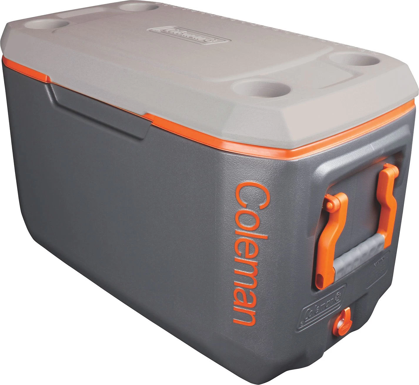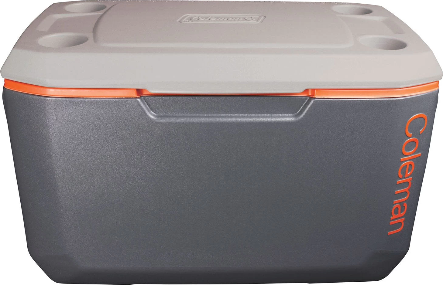 Keep your food and drinks cold for an extended time, and make the fun last longer, when you bring a Coleman® 70 Quart Xtreme® 5 Cooler. Xtreme® technology uses an insulated lid and extra insulation in the walls to keep your items cold for up to 5 days. Large enough to hold 100 cans, you’ll have plenty of space for refreshments for the entire party. Whether you’re headed on a long weekend camping trip, a roadtrip, or out to a BBQ, the comfort-grip no-crush handles make getting to your destination easy and comfortable. Once you arrive, the Have-A-Seat™ lid will ensure you always have a place to sit and relax, and the cup holders molded into the lid will keep your cold drink close while you enjoy the day. When the fun is done, the EZ-Clean top wipes clean, and the leak-resistant channel drain makes it easy to empty any excess water without tilting the cooler, so you’re ready for your next fun adventure.