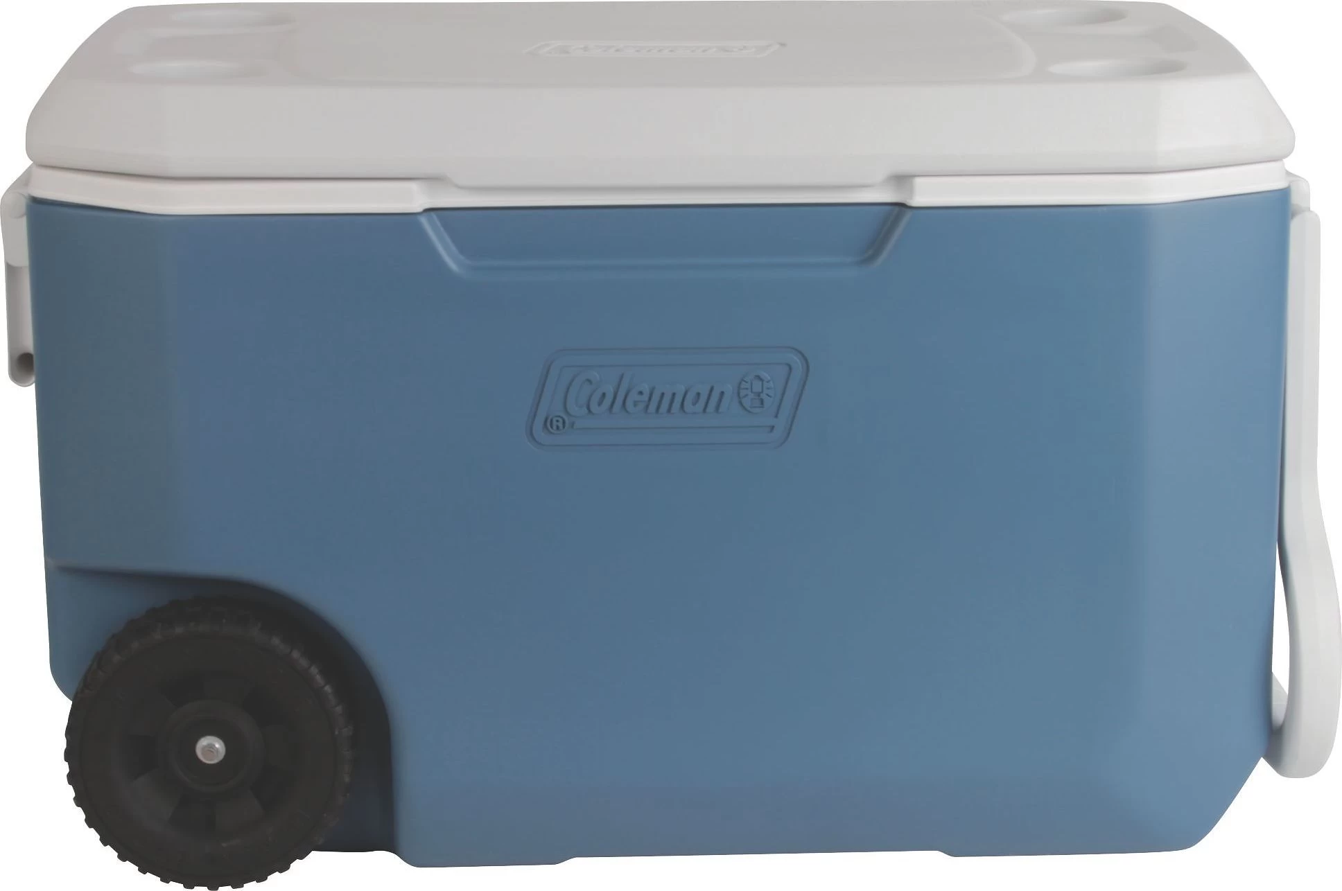 Keep your food and drinks cold for an extended time, and make the fun last longer, when you roll in with a Coleman® 62 Quart Xtreme® 5 Wheeled Cooler. Xtreme® technology uses an insulated lid and extra insulation in the walls to keep your items cold for up to 5 days. Large enough to hold 95 cans, you’ll have plenty of space for refreshments for a whole group of people. Whether you’re headed on a long weekend camping trip, a roadtrip, or across the ball field, the heavy-duty wheels and large tow handle let you roll over almost any terrain with hardly any effort. The additional 2-way handles make it easy to lift your cooler in and out of the car or onto a picnic bench. Once you arrive, the Have-A-Seat™ lid will ensure you always have a place to sit and relax, and the cup holders molded into the lid will keep your cold drink close while you enjoy the day. When the fun is done, the leak-resistant drain makes it easy to empty any excess water, so you’re ready for your next fun adventure.